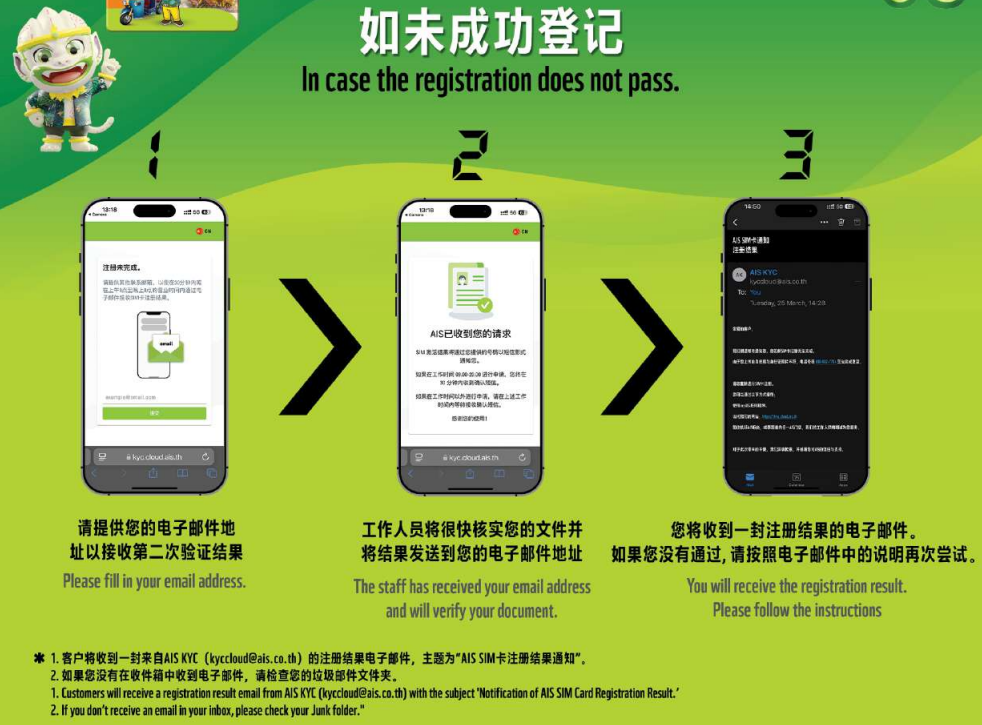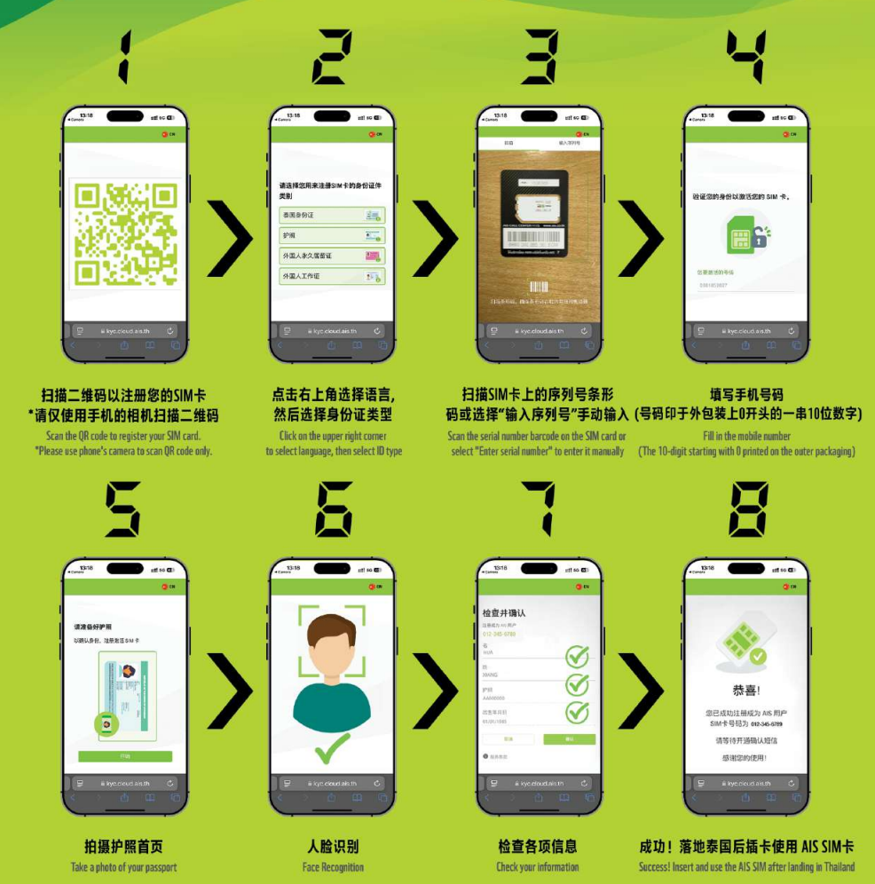 ☉ 实名链接:https://kyc.cloud.ais.th/client/select-cardtype 实名参考图-1 实名参考图-2